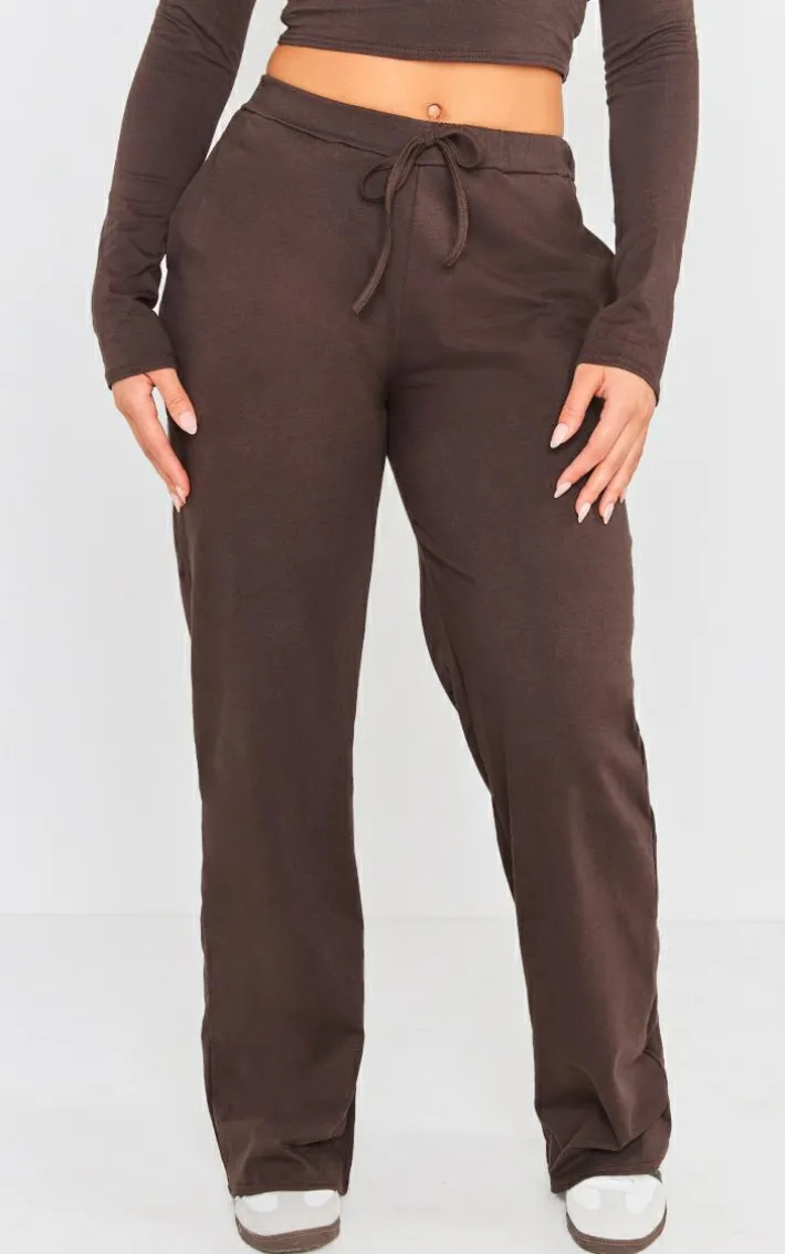 For an Insta worthy look, these coffee cotton jersey wide leg pants are essential. These sweatpants are brought to you in a coffee cotton material with a wide leg design, you won’t be able to resist. These pants will have you feeling edgy all season. Why not team with the matching top and a pair of sneakers to complete the look everyone is talking about.