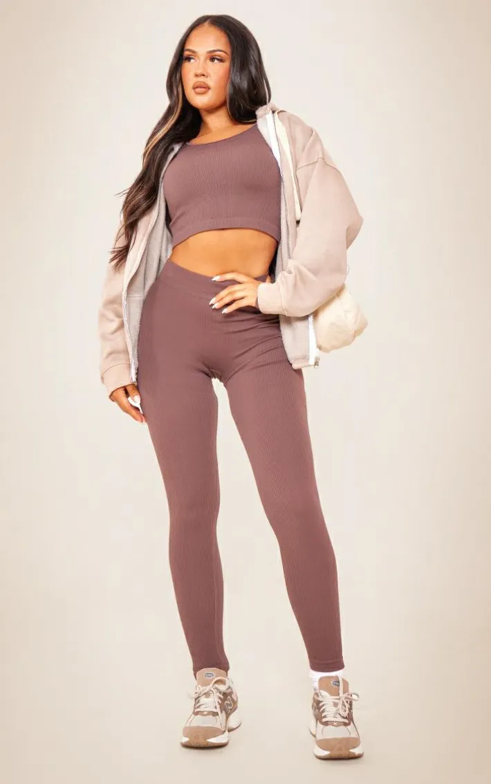 Take on those chilled days in style with these aubergine structured snatched rib leggings. Brought to you in an aubergine material with a structured contour design giving you a flattering fit like no other. These rib leggings are the perfect addition to your everyday wardrobe. Team with the matching crop top and some comfy sneakers to finish off the look.