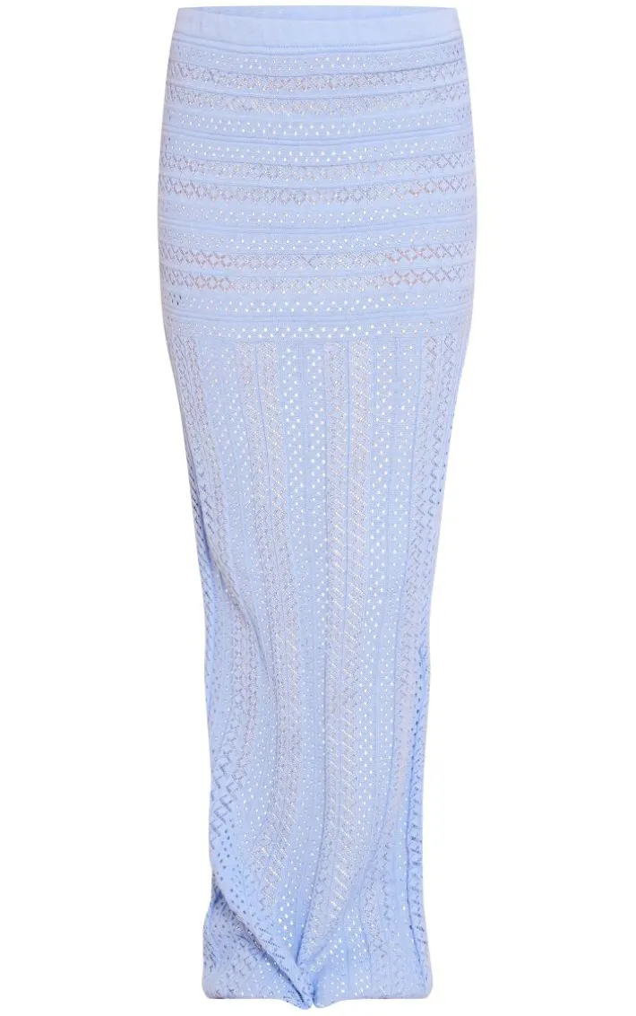 Work your styling techniques to make this cornflower blue pattern crochet maxi skirt fit any occasion. Brought to you in a cornflower blue material with a pattern crochet design that will have you feeling effortlessly chic this season. No matter what the occasion, you are sure to have heads turning. With its maxi length, this skirt is a must have. Team with the matching top and some comfy sandals to complete the look we are loving.