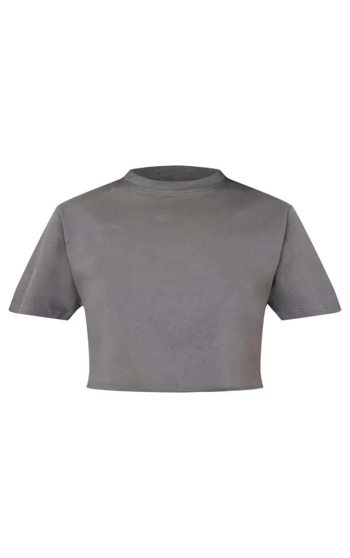 Give your basics collection a refresh with this tee, Featuring a charcoal organic material with short sleeves and a cropped length, we’re obsessed. Style with neutral bottoms and kicks for a fresh off-duty look.
