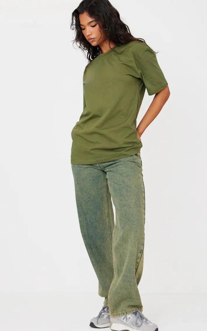 Update your off-duty wardrobe with this t-shirt. Featuring a khaki material in a comfy oversized fit, style this with cargo bottoms and combat boots to complete the look.