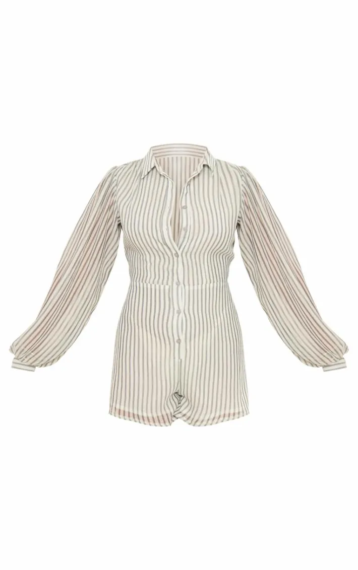 Elevate your look with this cream balloon sleeve shirt romper. Brought to you in a cream material with a balloon sleeve design, we are seriously obsessed. This shirt romper is all you need to set major trends. Team with a pair of sandals and your fave accessories to be the center of attention wherever you step foot.