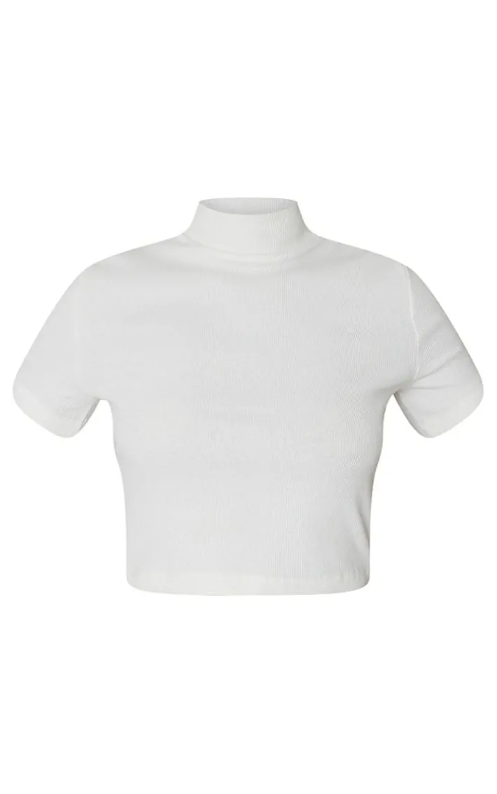 Make everyday styling simple with this must-have cream basic high neck short sleeve crop top. It is brought to you in a cream ribbed material with a high neck design and a cropped length, what more could you ask for? Say goodbye to all those what to wear dilemmas with this crop top. Team with comfy bottoms and chunky kicks for a fresh finish.