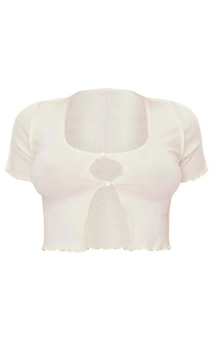 Take your sleepwear look to new heights with this cream brushed rib short sleeve pajama top. Brought to you in a cream hue brushed rib material with short sleeves and a dramatic cropped fit, what more could you want? Pair this pajama top effortlessly with the matching bottoms and simple accessories for a look we just can’t get enough of.