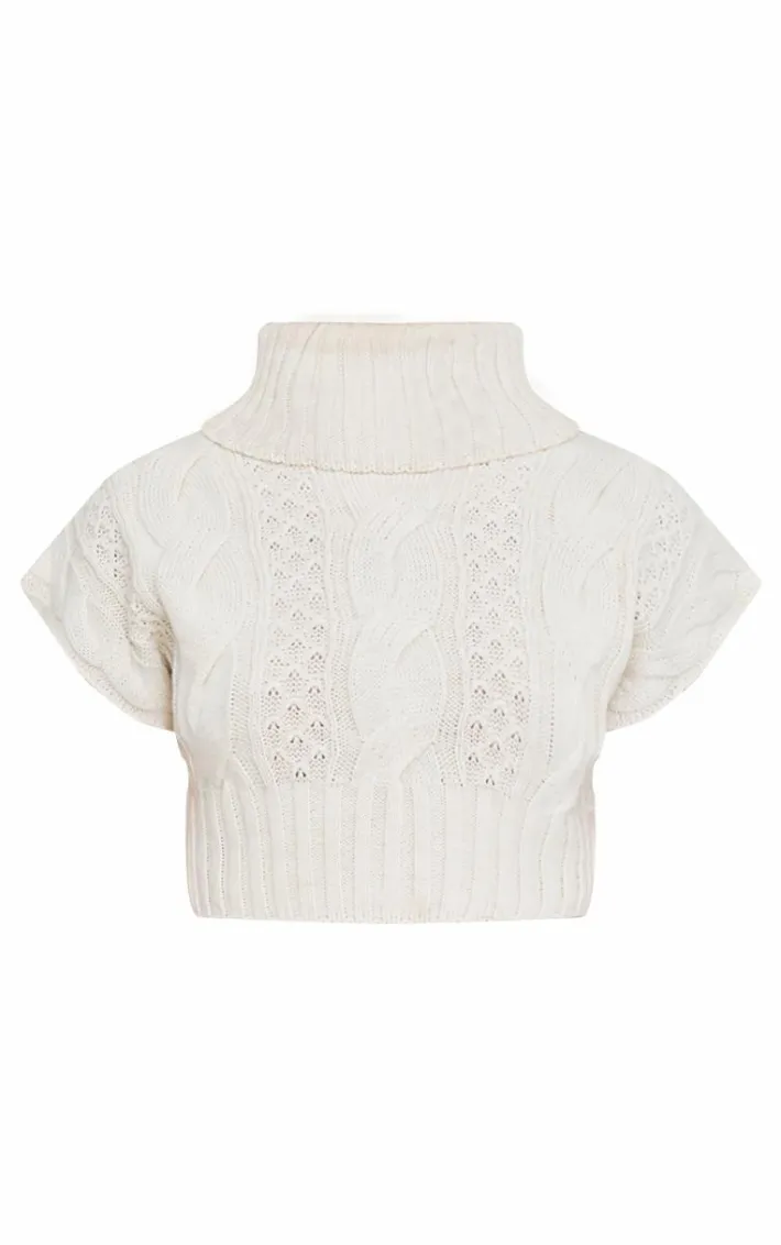 This cream cable knit roll neck cap sleeve cropped vest is all you need for the season ahead. Brought to you in a cream hue, with a cable knit material, roll neck design and cap sleeve style, your basics collection just got a whole lot better. Style with a brown puffball skirt and leather look boots for a look you need to add to your basket.
