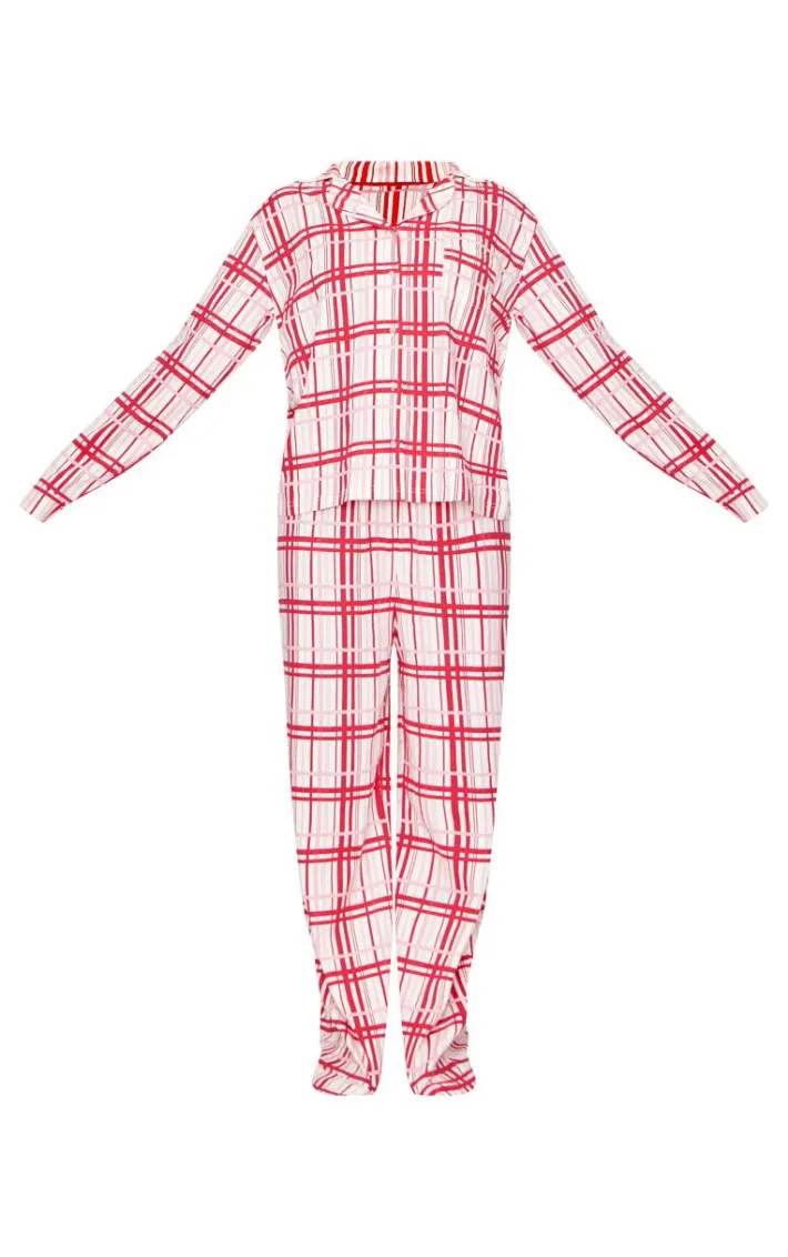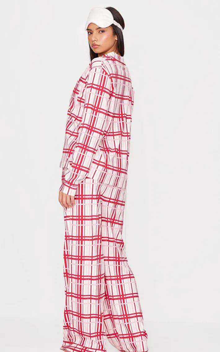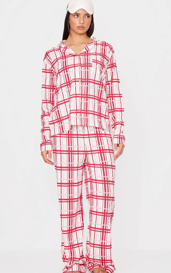 Get ready for a cosy night in with these cream check print jersey long pj set. This set includes a long sleeve shirt and matching long bottoms, both in a cream hue jersey material with a check print design, what more could you want? Just add your fave pair of slippers and an eye mask to complete the look.