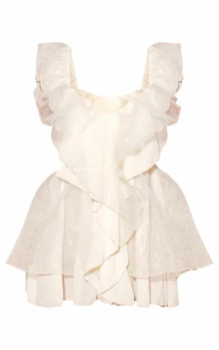 Create a look no one will forget with this dreamy cream chiffon frill micro mini dress, we just can’t get enough. This dress features a cream chiffon material with frill detailing and a micro mini length. Style this chiffon dress with strappy heels and statement accessories to have all eyes on you.