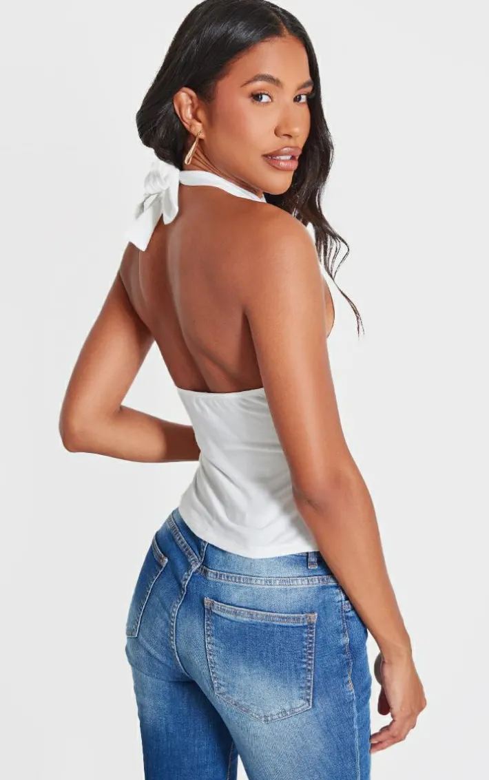 Keep your style game strong with this cream contour jersey ruched halterneck long top. Brought to you in a cream contour jersey material with a ruched design, you wont blend in doll. Its halterneck fit is perfect for those day to night looks and beyond. Pair it with your staple denim jeans for a combo that can be dressed up or down.