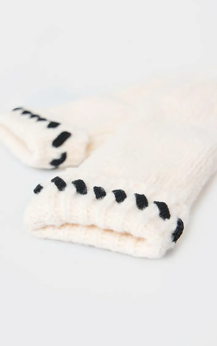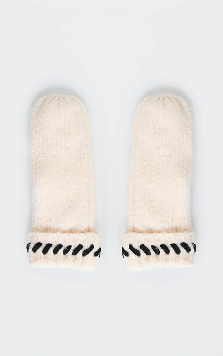 You need these cream contrast stitch knit mittens in your new season collection. Brought to you in a cream knit material with a contrast stitch design, what more could you want? Team these mitten with your fave outfit of the day for a fool proof finish everyone will be talking about this season and beyond.