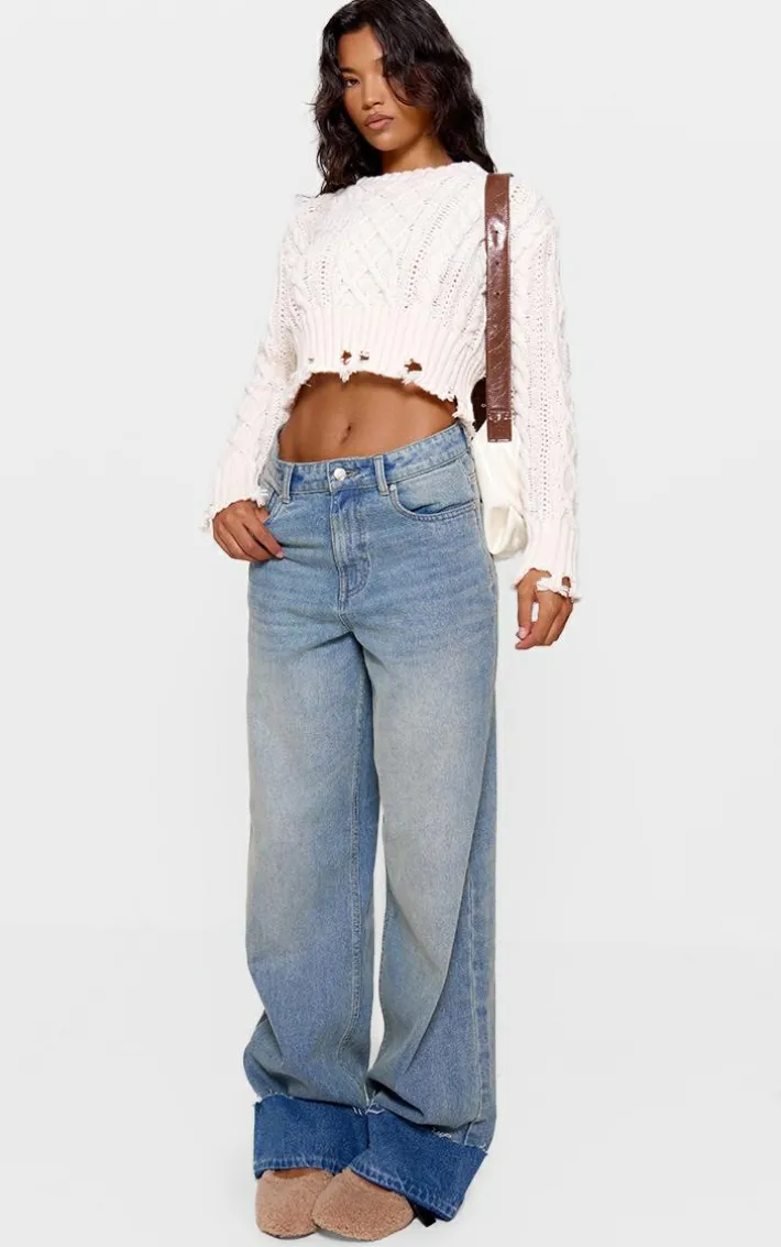 Say hello to the cream distressed cable knit cropped sweater. Its fresh cream shade, with a distressed cable knit material and cropped design has us obsessed. Pair with a black mini skirt over pants moment, leather boot heels and some silver accessories for a look we’re all after. We’ve got you covered for that edgy day to day vibe.