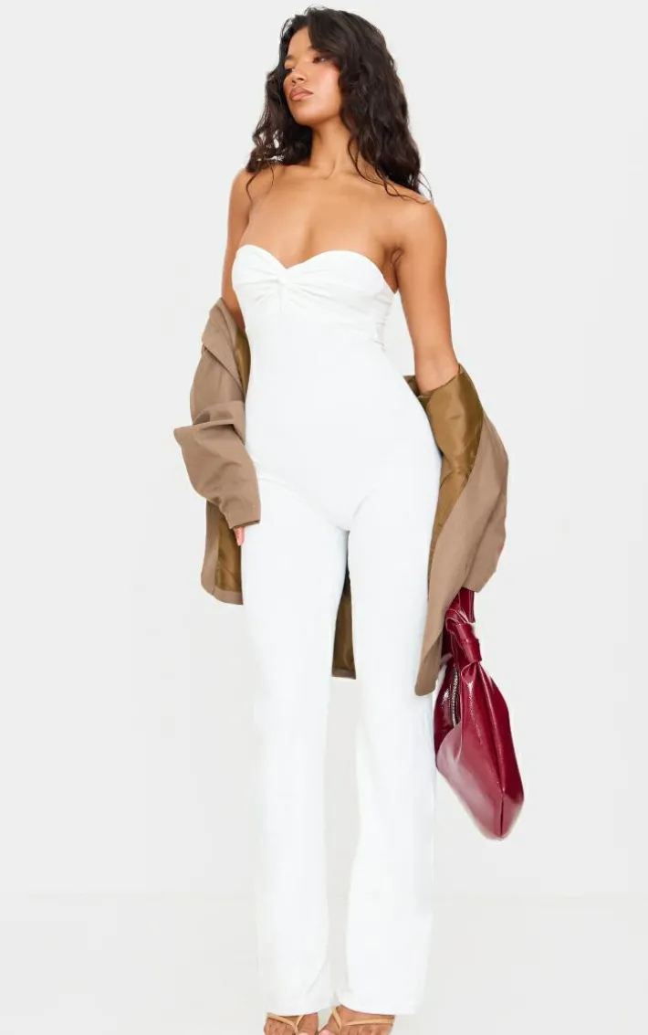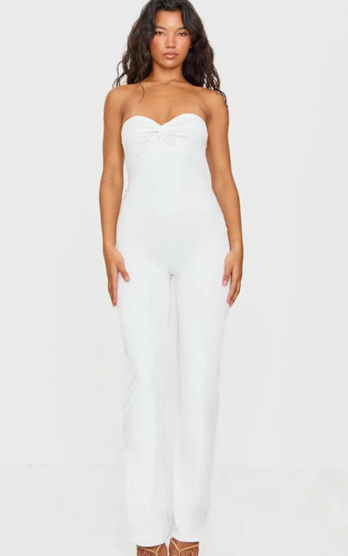 It’s official, we’re obsessed with this cream double layer contour jersey twist bandeau jumpsuit. Brought to you in a cream double layer contour jersey material with a twist bandeau detail, this jumpsuit is everything you need and more. Pair with white heels and gold accessories for a look that won’t miss.