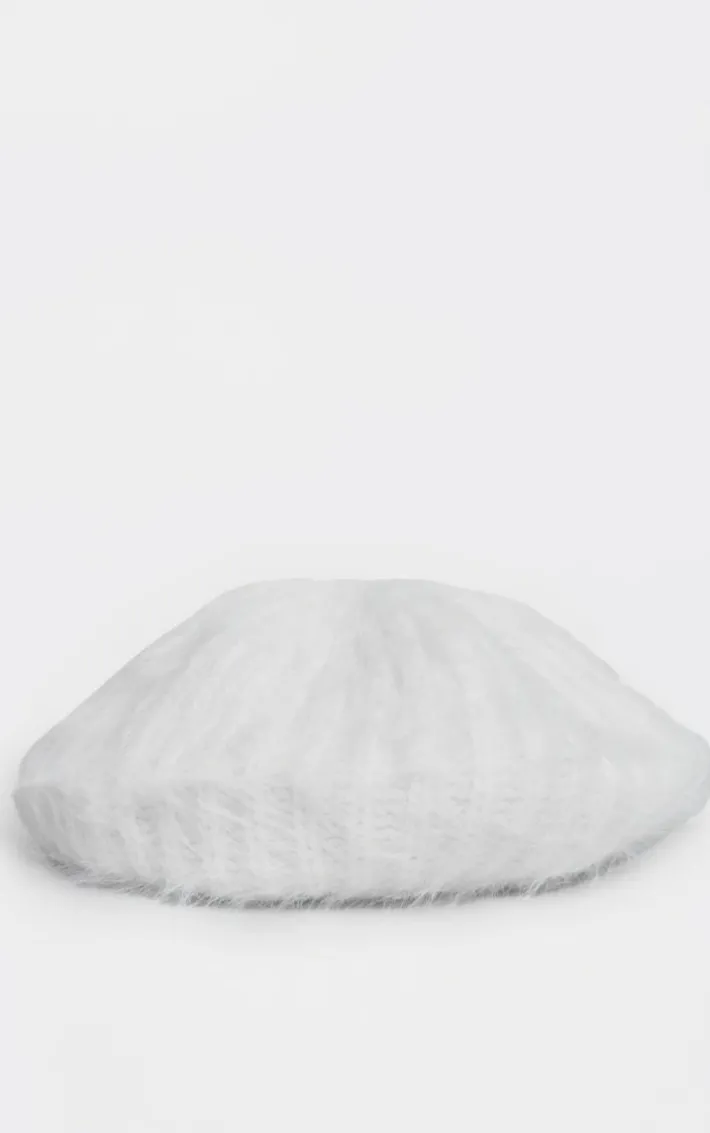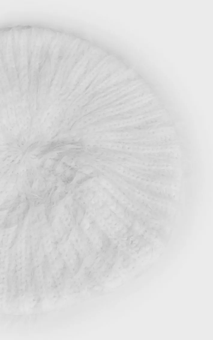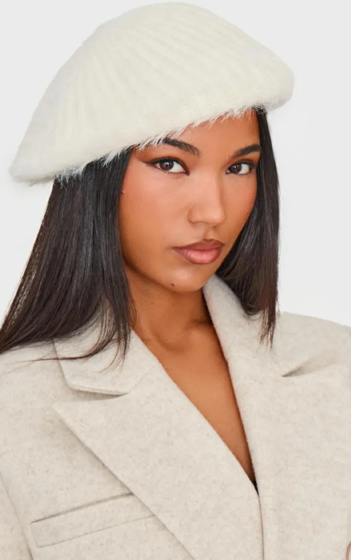 Throw on this cream eyelash knit rib oversized beret as an outfit topper that will instantly elevate your look. Brought to you in a neutral cream hue, with a luxe eyelash knit rib material and oversized fit, opt for this for a look you won’t regret. Style with your A/W outfit for a must have finish.