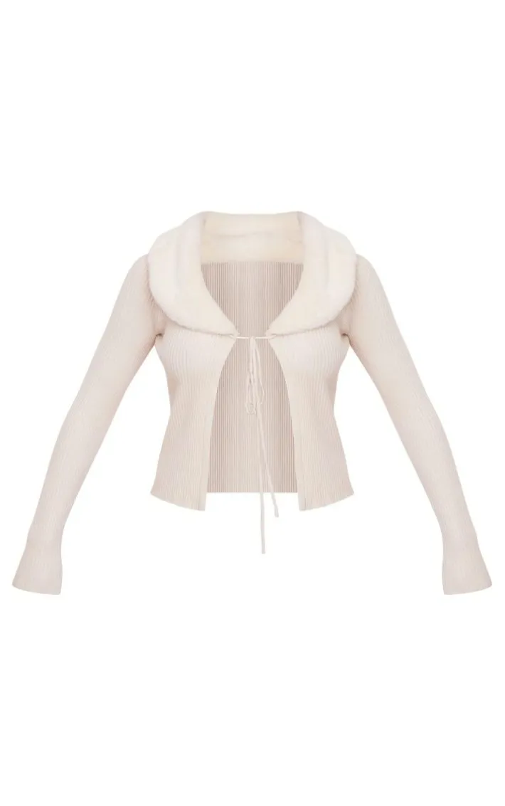 Level up your knitwear collection with this cream faux fur collar rib knit cardigan. This cardigan is brought to you in a cream rib knit material with a faux fur collar and long sleeves, what’s not to love? This cardigan is here to banish any of your what-to-wear dilemmas doll. Style this with pants, chunky boots and accessories for the ultimate combo.