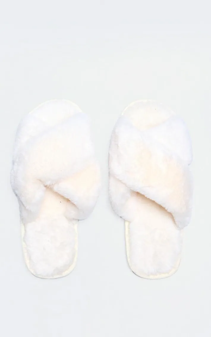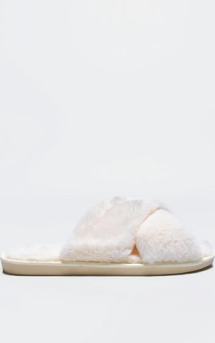These cream faux fur cross over slippers are calling your name for a cosy staple. Brought to you in a must-have cream hue, with a luxe faux fur material and cross over design, how can you resist? Simple pair with some loungewear for a vibe we’re loving.