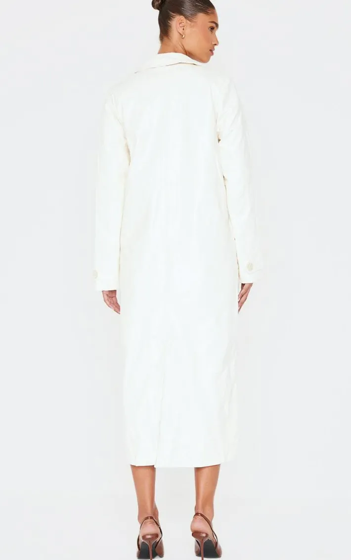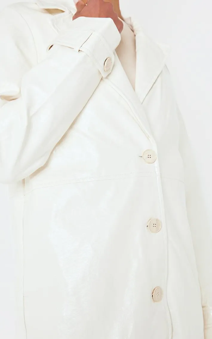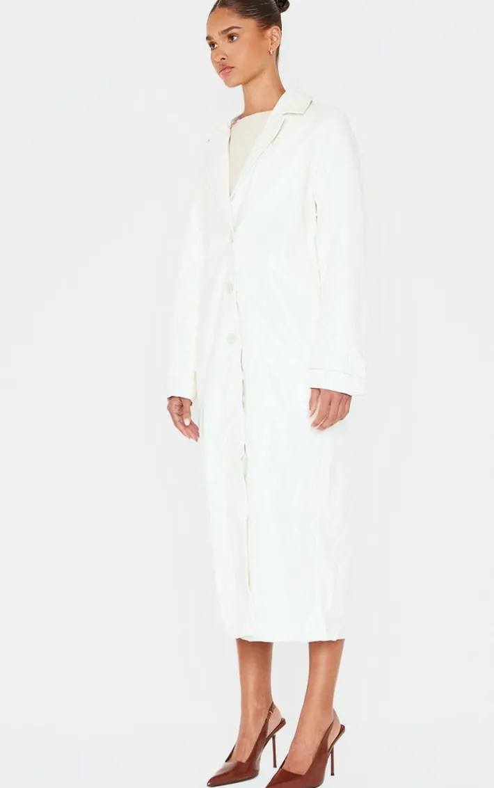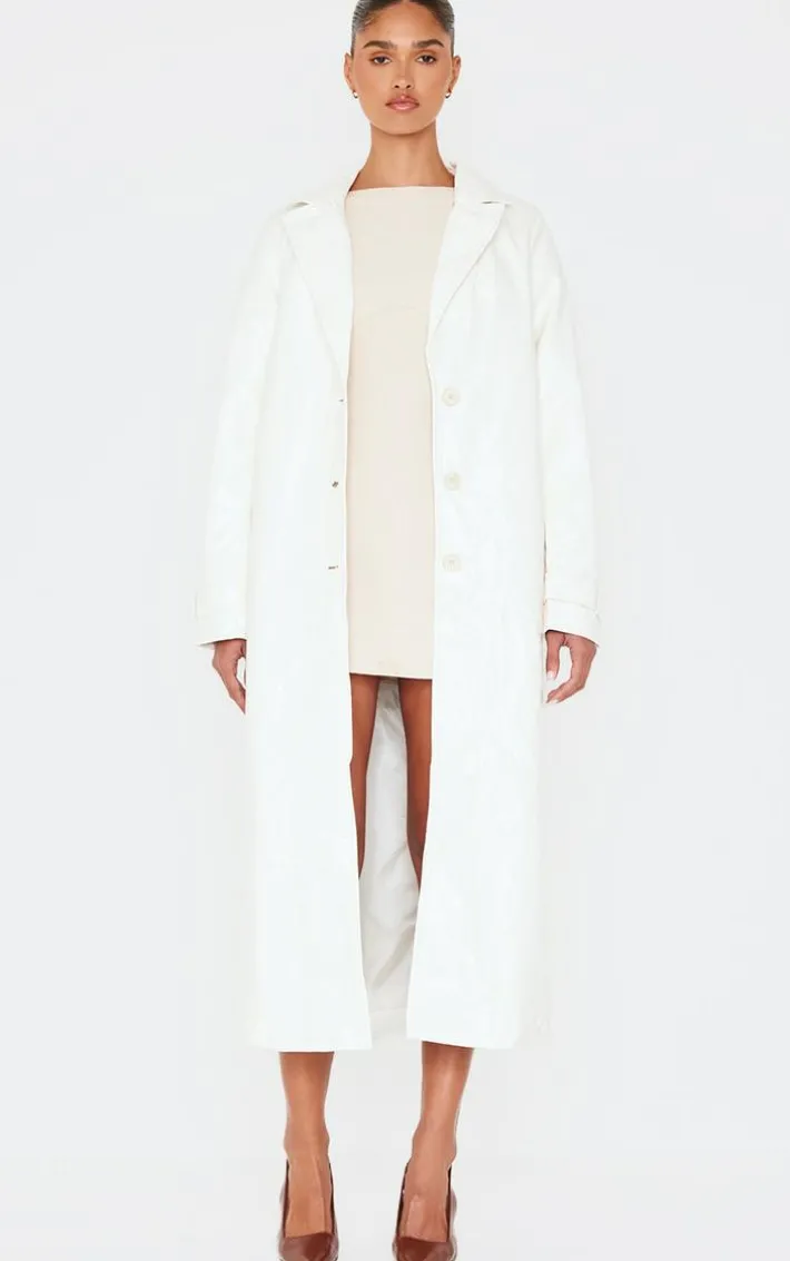 This cream high shine textured faux leather maxi coat is a must have in your A/W collection. Brought to you in a crisp cream shade, with a luxe high shine material and textured faux leather design, how can you say no? Style with a mini dress and pair of court heels for a look like no other.