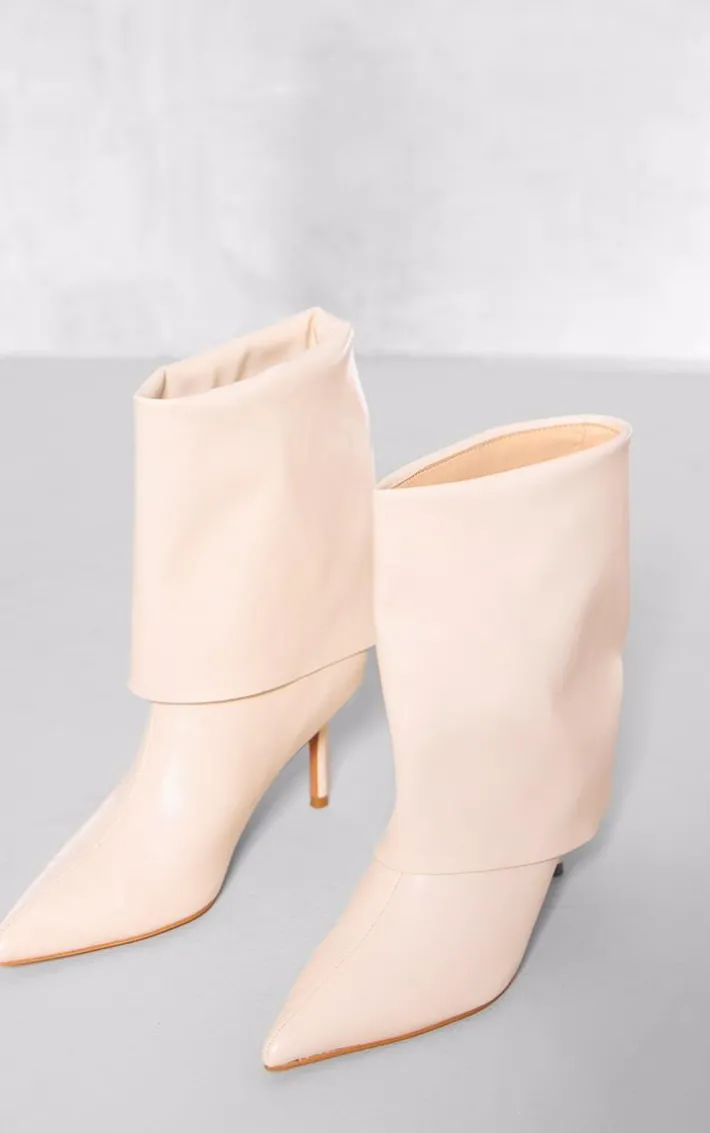 Stay in style with a shoe that will be perfect all year round , these cream PU point toe fold over low heeled ankle boots are dreamy. Brought to you in a cream PU material with a point toe design and fold over detail, these low heeled ankle boots are calling your name. Style these with your fave outfit of the day to strut your stuff.