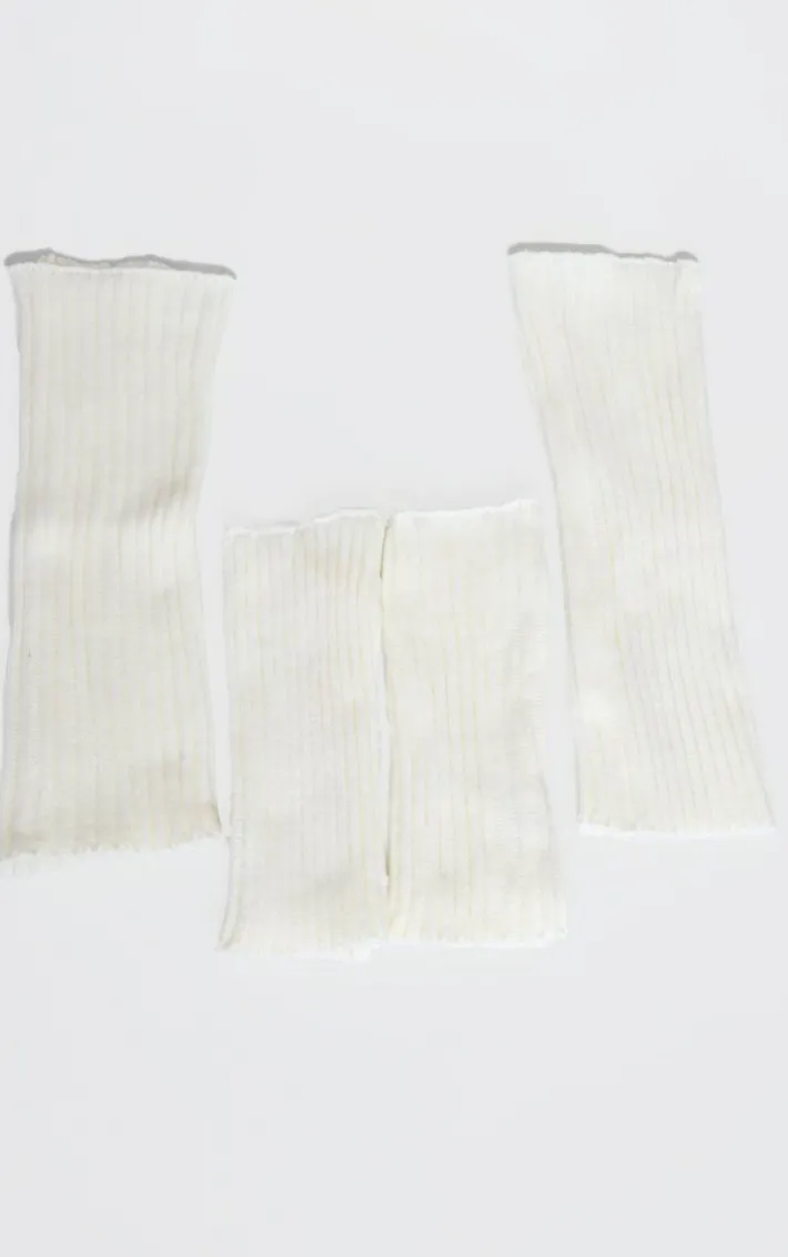 Channel all the comfy but chic vibes into your new season wardrobe with this cream ribbed hand warmers and leg warmers set, how could you not be in love? This set features hand warmers and leg warmers both in a cream ribbed material and a cosy fit, we’re seriously obsessed. Pair this set with your fave outfit of the day for a flawless finish.