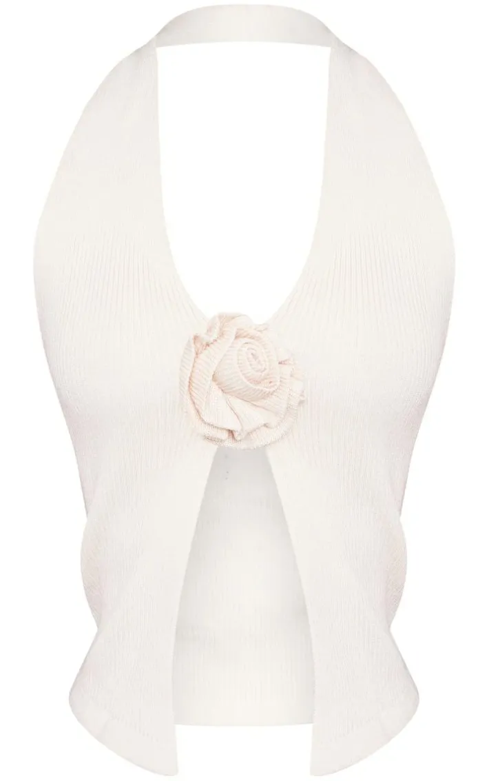 Be on trend this season with this cream rose halterneck top. Brought to you in a cream material with a rose detail and a halterneck design, you will bring all the edge to your outfit of the day. This top is perfect for those on the go days. Team with denim jeans and high heels to be the center of attention wherever you step foot this season..