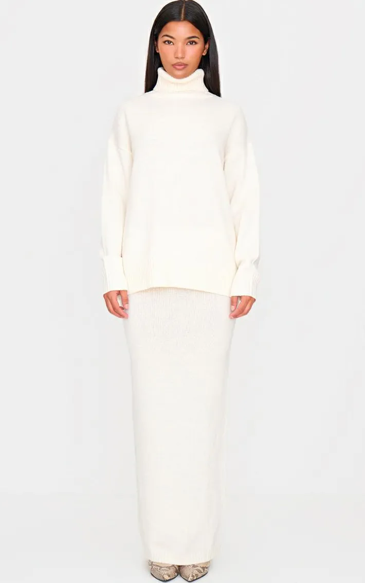 When the cold weather calls so does this cream soft knit roll neck oversized sweater. Brought to you in a cream hue soft knit material with a roll neck detail and oversized fit, this sweater is all the new you need. Style with the matching maxi skirt, heeled boots and simple accessories for a chic combo we’re loving this season.