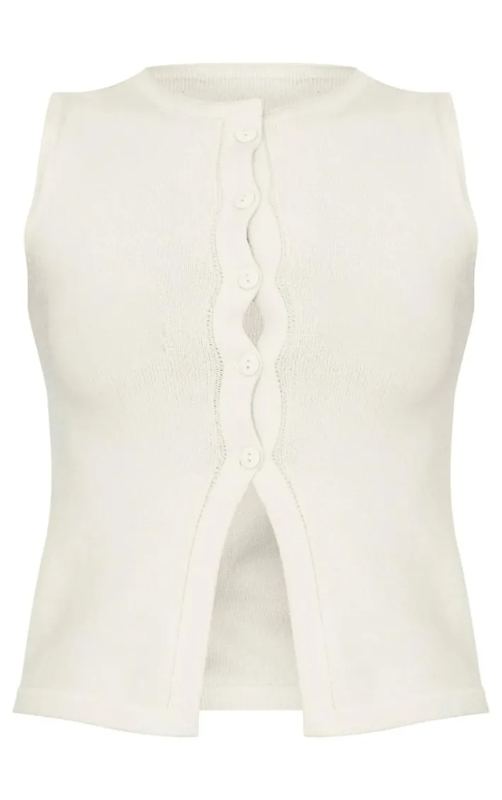 Nothing says cosy season quite like knitwear, which is why you need this cream soft knitted button through vest. It’s made with a cream hue soft knitted fabric and a button through vest design, perfect for layering for those colder weather days. Why not style with a puffball skirt, faux leather jacket and knee high boots for an effortless finish?