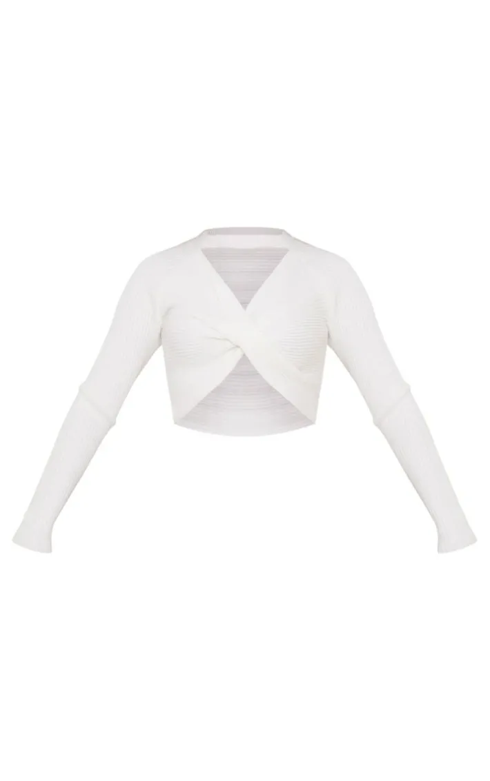 This cream soft rib knit front twist crop top is perfect for your new season wardrobe. Brought to you in a cream hue soft rib knit material with a twist front design, a cropped fit and long sleeves, what more could you ask for? This crop top is sure to take your look effortlessly form day to night. Style seamlessly with cargo jeans and chunky boots for a look we just can’t get enough of.