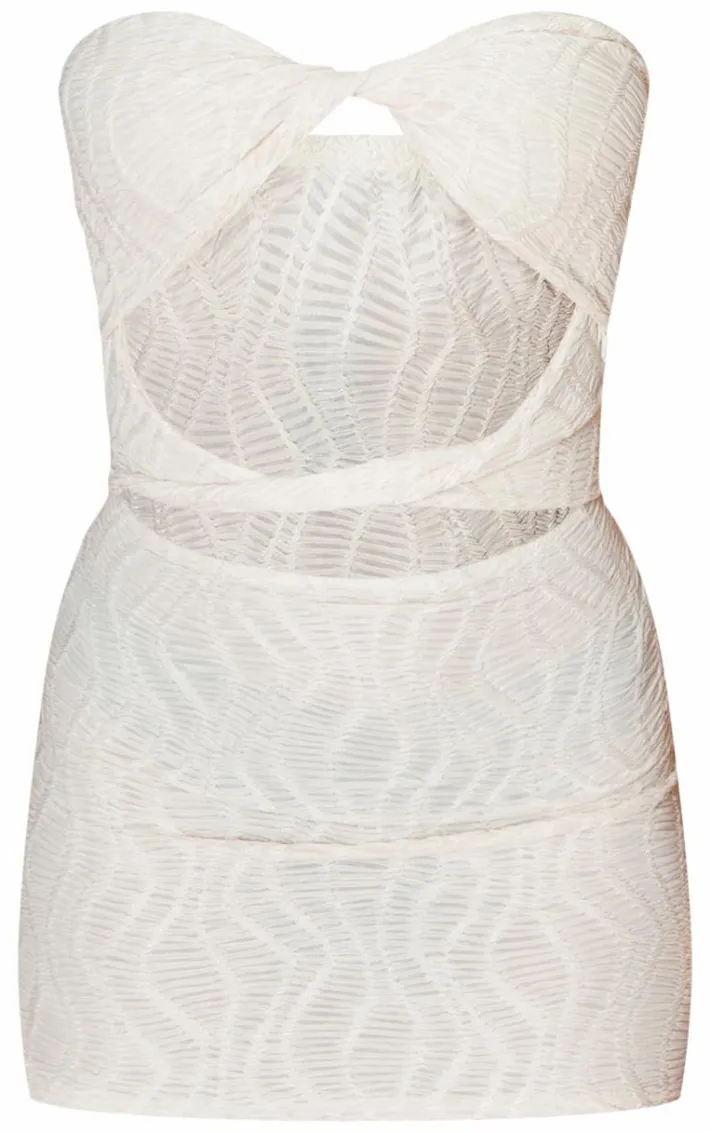 Make a statement this season in this cream textured bandeau twist detail cut out maxi dress. Brought to you in a cream textured material with a bandeau neckline and twist cut out detail, what’s not to love? Style this mini dress with gold heels and accessories for a look we’re obsessing over.
