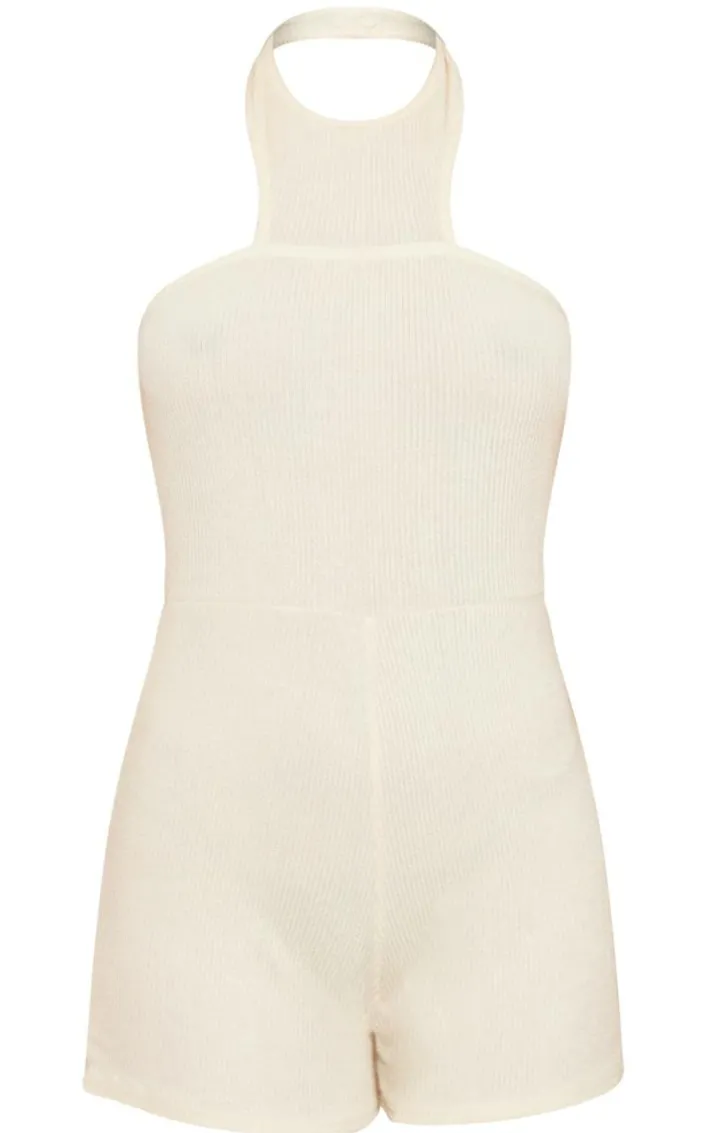 Get that effortlessly comfy vibe on point with this cream textured rib high neck halter unitard. Made from a cream textured rib material with a high halter neckline and a figure-flattering fit, what more could you ask for? This unitard is the ultimate styling piece for your off-duty days doll and you are sure to impress. Team with an oversized shirt, chunky sneakers and shades for a fool-proof finish.