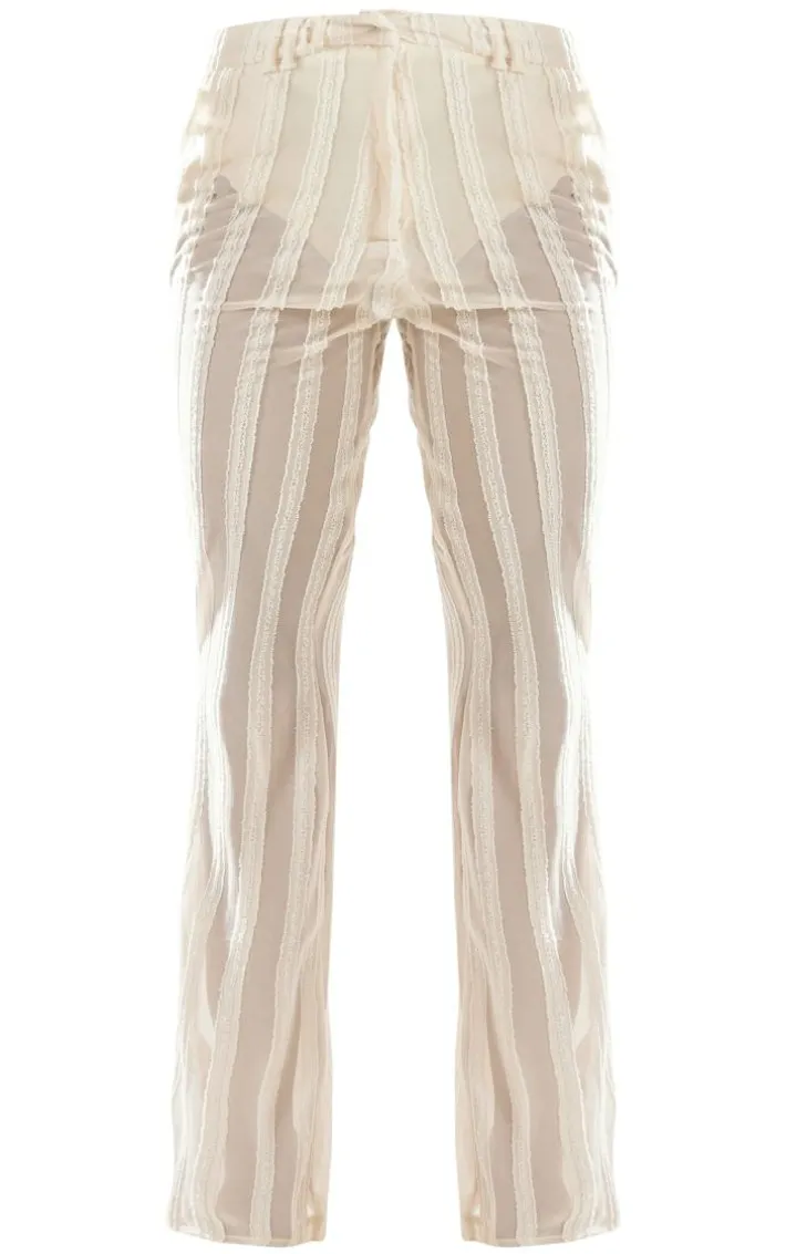 Level up your weekend ‘fit with these cream-textured woven flare pants and be sure to impress. Brought to you in a cream-textured woven material with a low-rise waist and a flared fit, what’s not to love? Whether its brunch plans with the dolls or date night with someone special, these pants are the answer. Style effortlessly with the matching top, clear heels and a clutch bag for a dreamy finish.