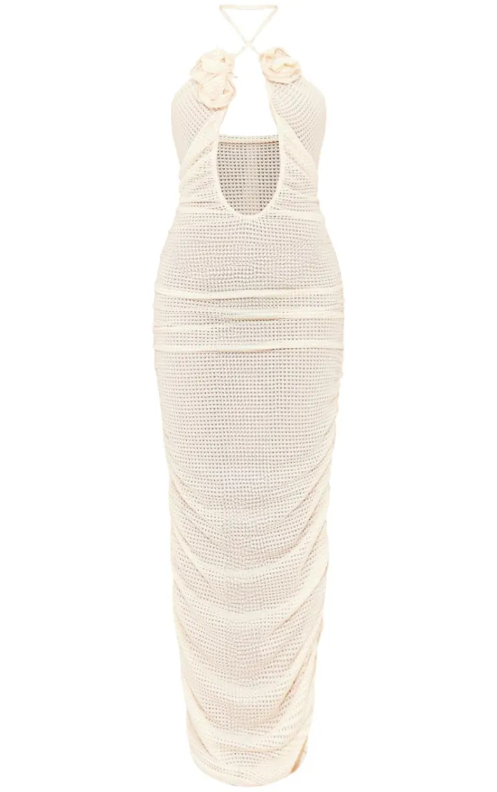You are guaranteed to steal all the stares in this cream waffle cross halter neck rose detail maxi dress. Brought to you in a cream waffle material with a halter neckline, rose detail and a maxi length, how can you resist? Seriously chic and in a figure-flattering fit, this maxi dress is perfect for your next occasion. Just add your heels and some glam accessories to take the look to a whole new level.