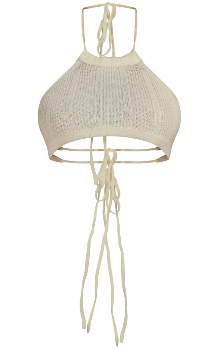 Make them stop and stare with this cream wide rib knitted strappy halter top. This unreal top is made from a cream knitted material for a comfy but chic look you won’t be able to resist. With a wide rib design and strappy detailing, it’s a yes from us. Team with the matching skirt, some of your fave heels and your go to gold hoops to elevate the look even further.