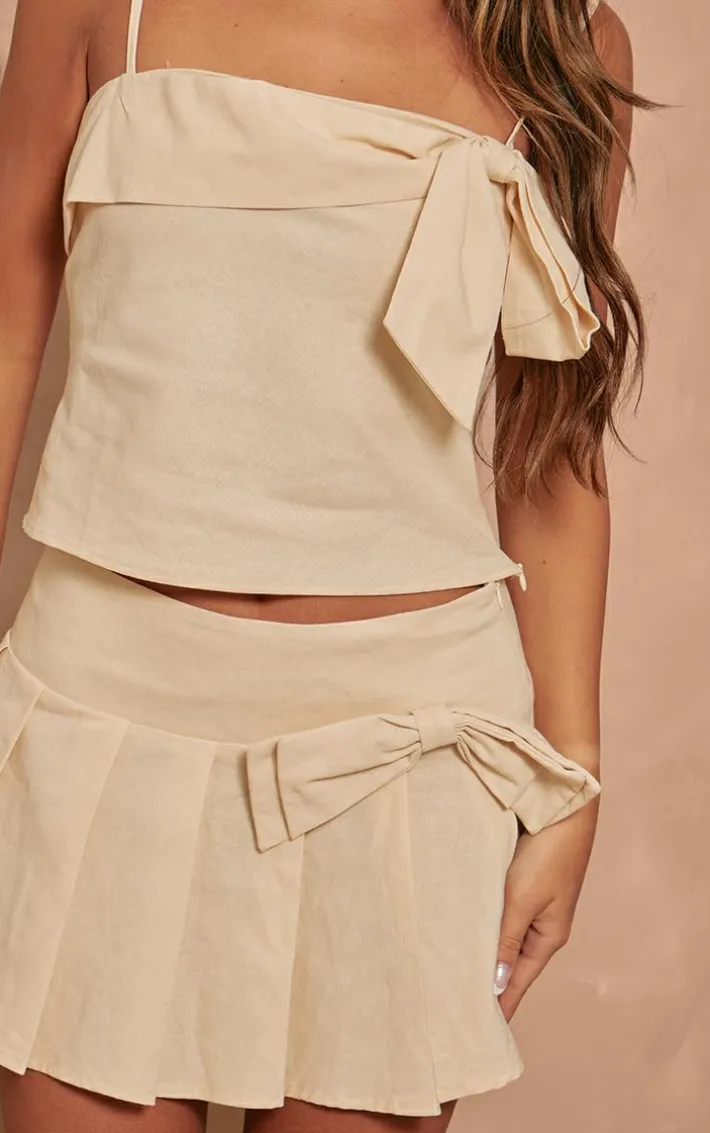 Add some edge to your outfit of the day with this cream woven bow mid rise skater skirt. This skater skirt is brought to you in a cream woven material with a bow detail and a mid rise, what’s not to love? With its skater style you’re sure to earn all the likes. Simply wear with the matching top, high heels and accessories for a look like no other.
