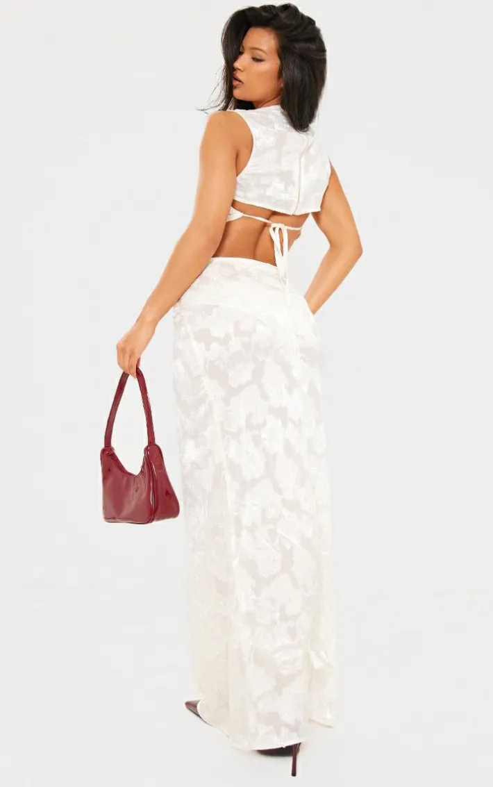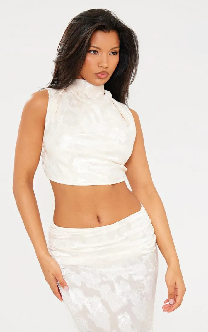 Get ready to earn all the compliments in this dreamy cream woven floral sleeveless tie back crop top, you won’t be able to resist. This top features a cream woven material with floral detailing and a tie back design, it is perfect for your next date night and beyond. Style this floral top with the matching skirt, statement hue heels and a shoulder bag for a look we just can’t get enough of.