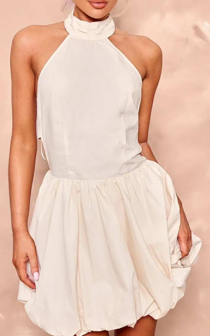 Look all kinds of chic in this cream woven high neck tie back puff ball dress. Brought to you in a cream hue woven material with a high neckline, a puffball design and tie back detailing, we are in love. Style this cream dress with sandals and simple gold accessories for a look that is sure to make heads turn for all the right reasons.
