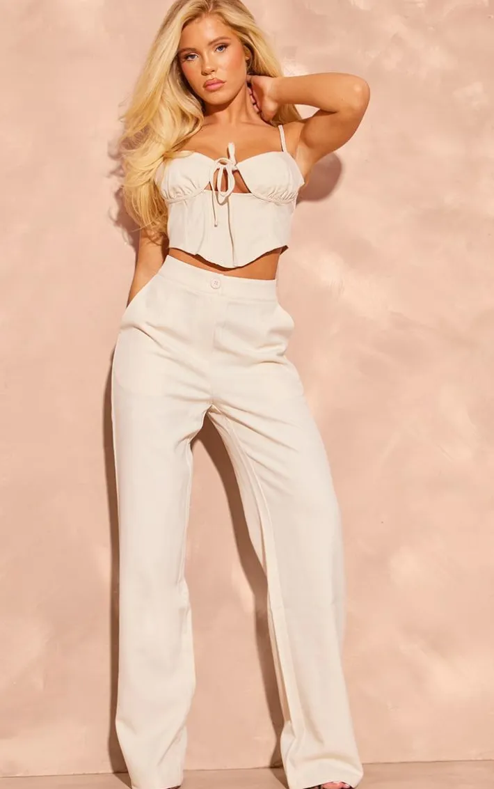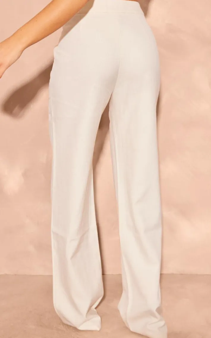 Be on trend this season with these cream woven tailored mid rise wide leg pants. Brought to you in a cream woven material with a mid rise and an tailored design and a wide leg fit, you will bring all the edge to your outfit of the day. These pants are perfect for those on the go days. Team with a top, court heels and accessories to be the center of attention wherever you step foot this season.