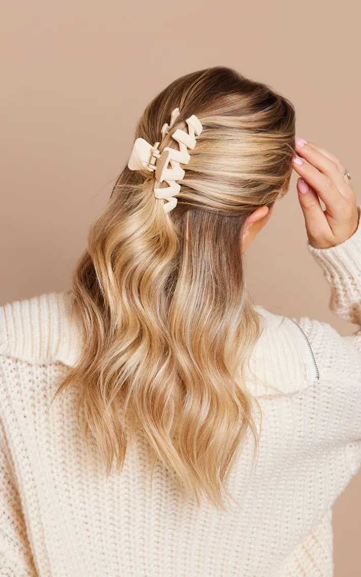 Your accessory collection is in need of this cream zig zag hair claw. Brought to you in a cream hue material with a zig zag design, what more could you want? Whether you add this hair claw to your outfit of the day for a simple finishing touch or styling the perfect up-do for your weekend fit, you will be reaching for this hair claw again and again.