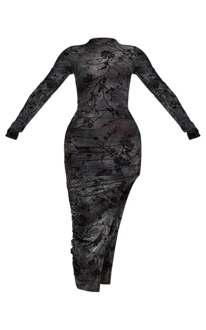 Make heads turn when wearing this statement dark blue floral devore soft touch long sleeve split maxi dress. This maxi dress is brought to you in a dark blue devore soft touch material with floral detailing, long sleeves and a maxi length, what more could you ask for? This maxi dress is everything and more we’re loving paired with clear high heels.