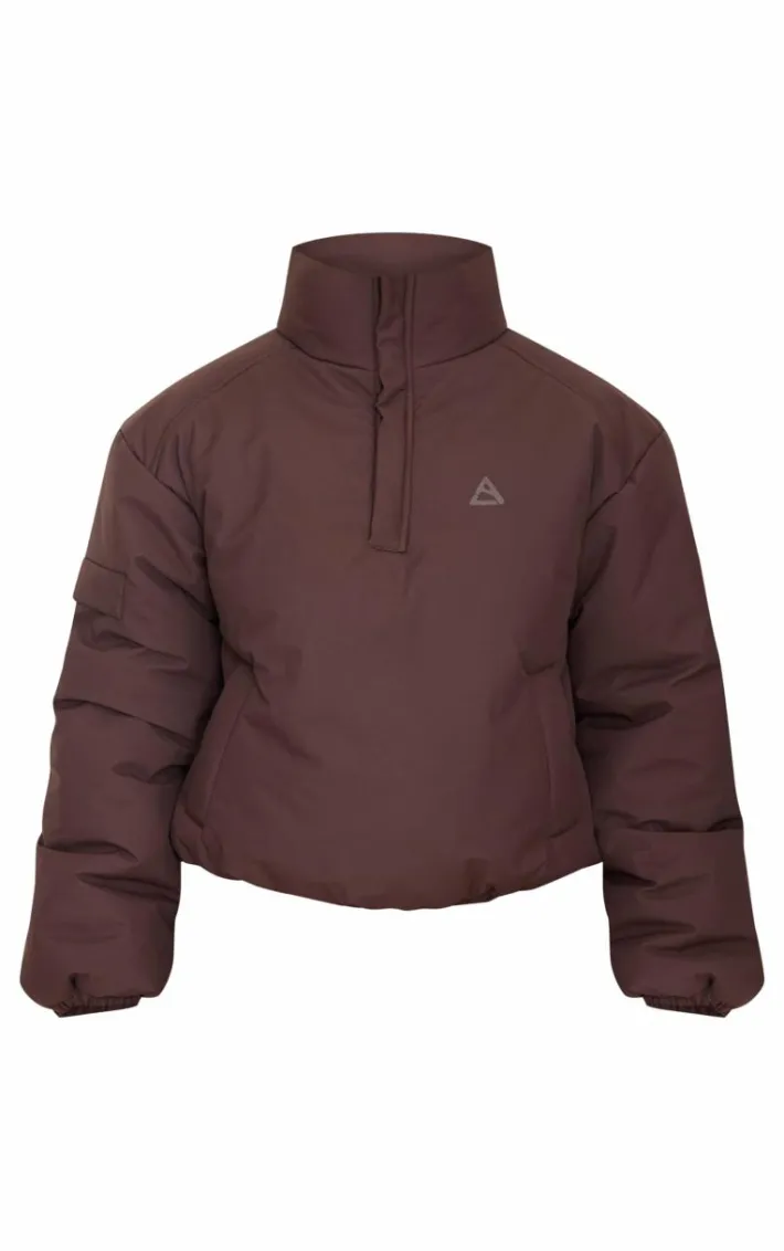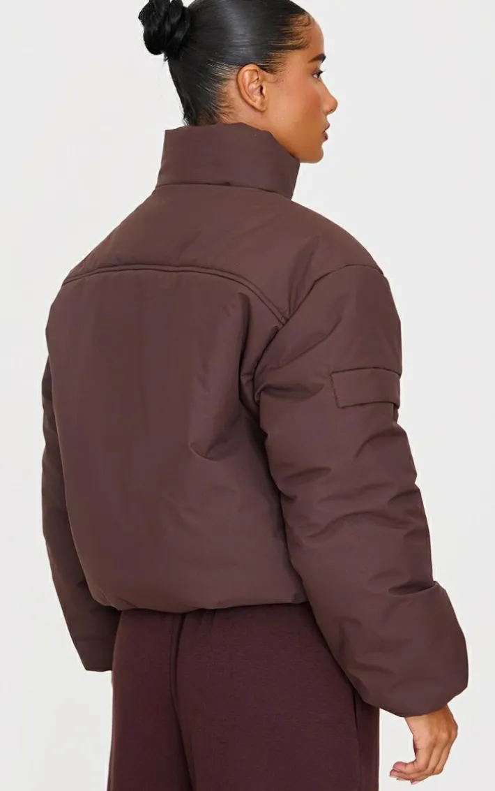 Up your outerwear game with this dark chocolate high neck cropped puffer jacket. Brought to you in a staple dark chocolate shade, with a high neck design, cropped finish and puffer look, you’ll be reaching for this on cold evenings all season long. Style with a pair of chocolate sweatpants for a look we can’t get enough of.