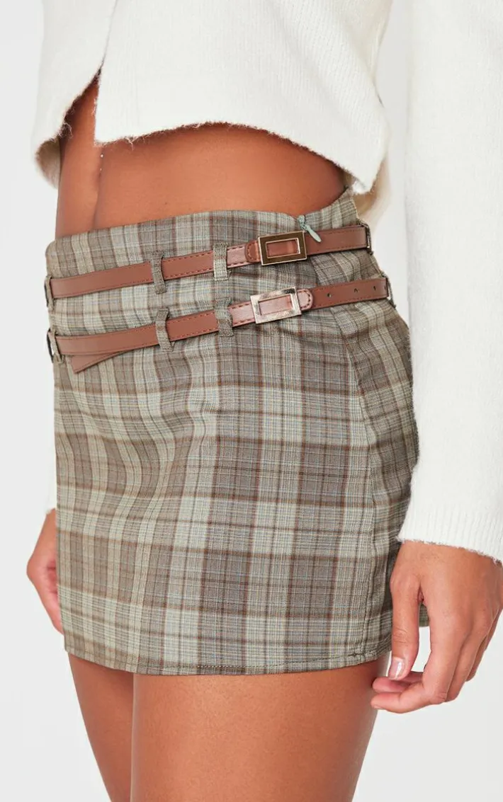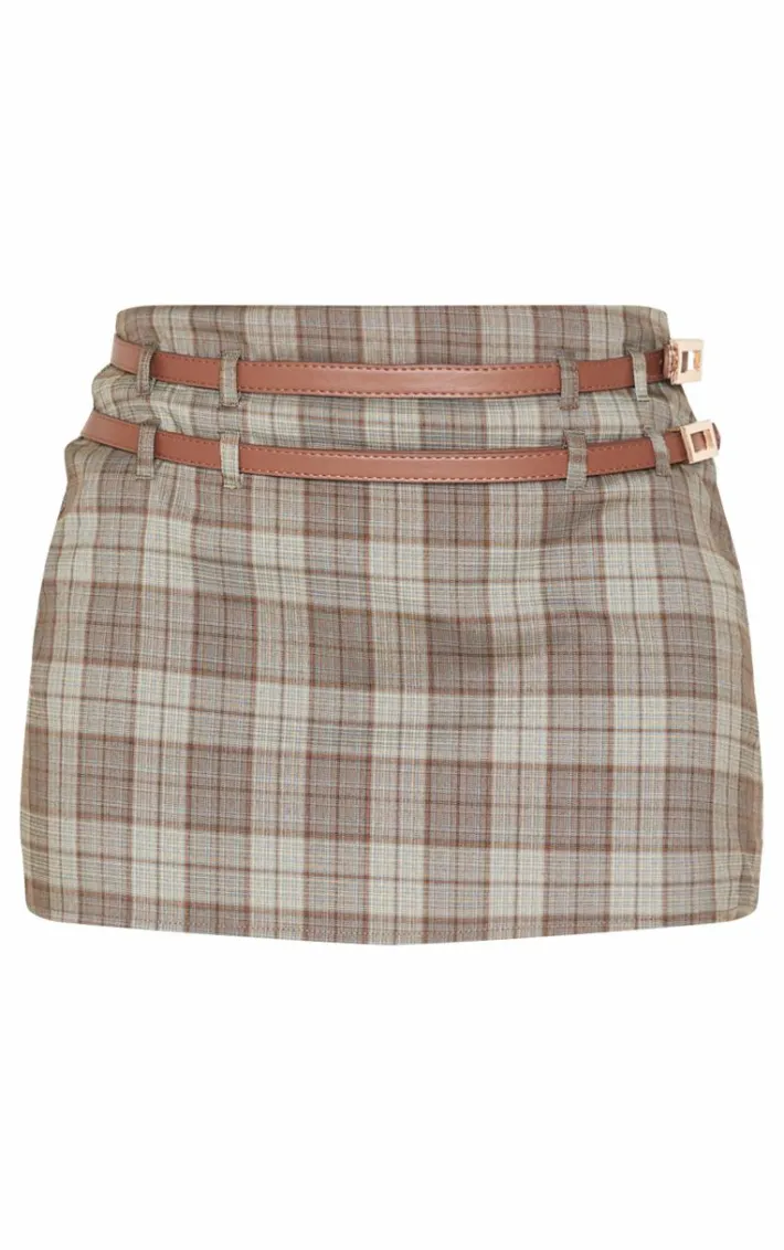 Keep your new season look on trend with this dark green plaid printed double belt tailored mini skirt. Brought to you in a dark green plaid printed material with a double belt design and a flattering tailored fit, how can you resist? Style this mini skirt with a faux leather vest, slip on heels and gold accessories for a look that is sure to gain all the compliments.