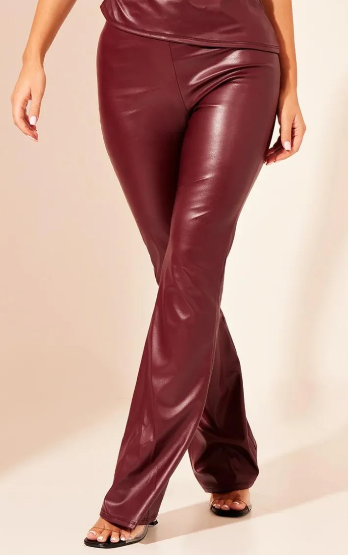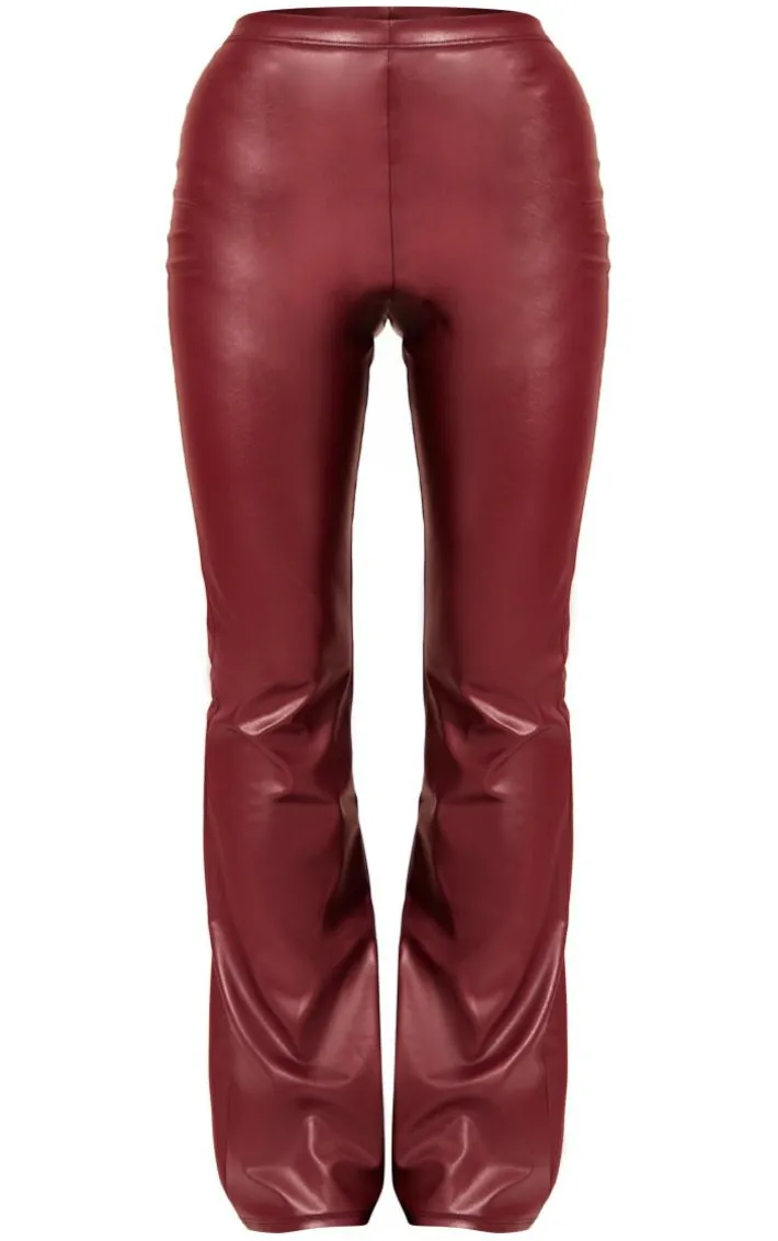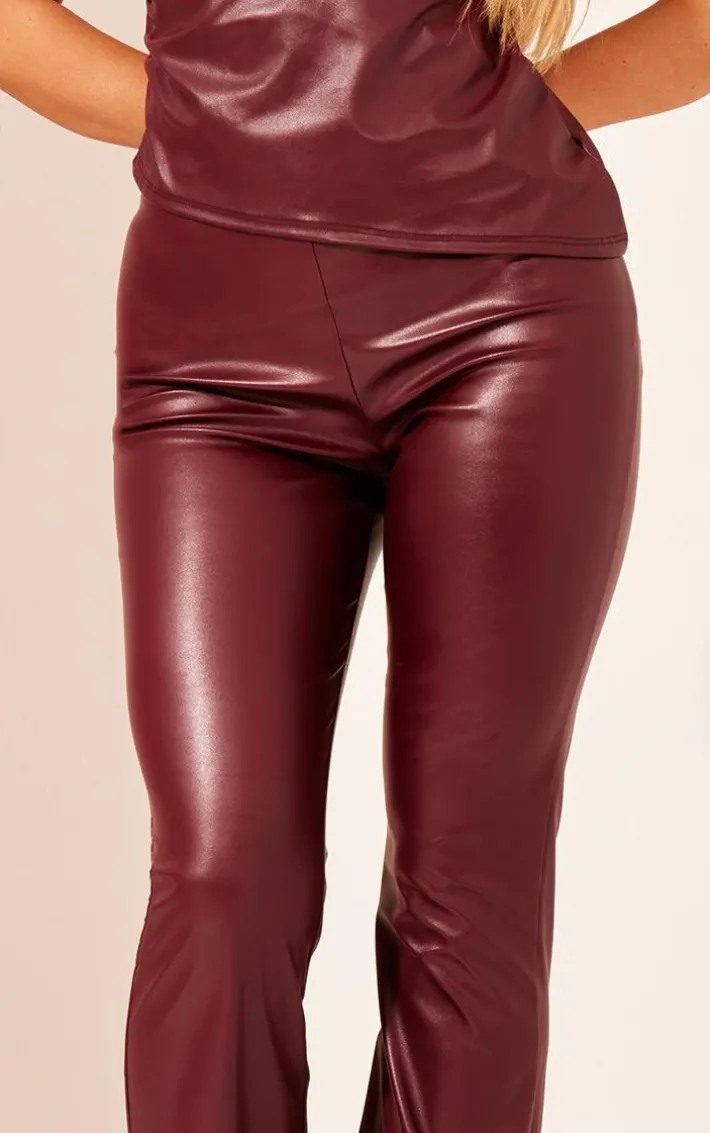 When the weekend calls, so do these dark red faux leather high waisted flared pants. Brought to you in a dark red faux leather material, brining all the edge to your look. Its high waisted fit and flared design is perfect for those upcoming date nights. Team with the matching top and a pair of clear heels to turn heads wherever you step foot.