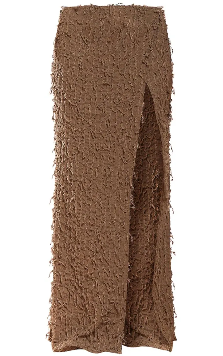 When the weekend calls, so does this dark taupe distressed side split maxi skirt. Brought to you in a dark taupe material with a distressed side, what’s not to love ? This maxi skirt has a side split adding all the edge to your outfit of the day. Team with your fave accessories and the matching top to finish off the look we are loving.