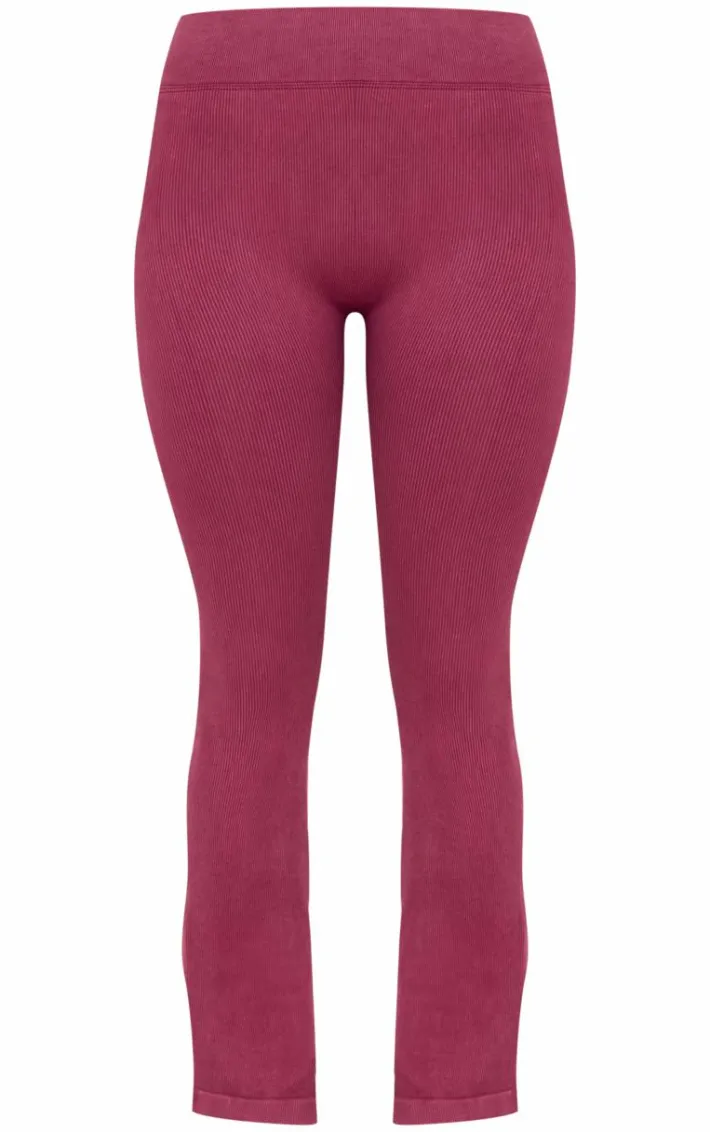Keep it chic even on those off-duty days with these deep burgundy acid wash seamless rib flare yoga Pants. Brought to you in a deep burgundy acid wash material with a seamless rib design, these yoga Pants are all you need to turn heads. Team with a pair of sneakers and the matching top for a fool proof finish.