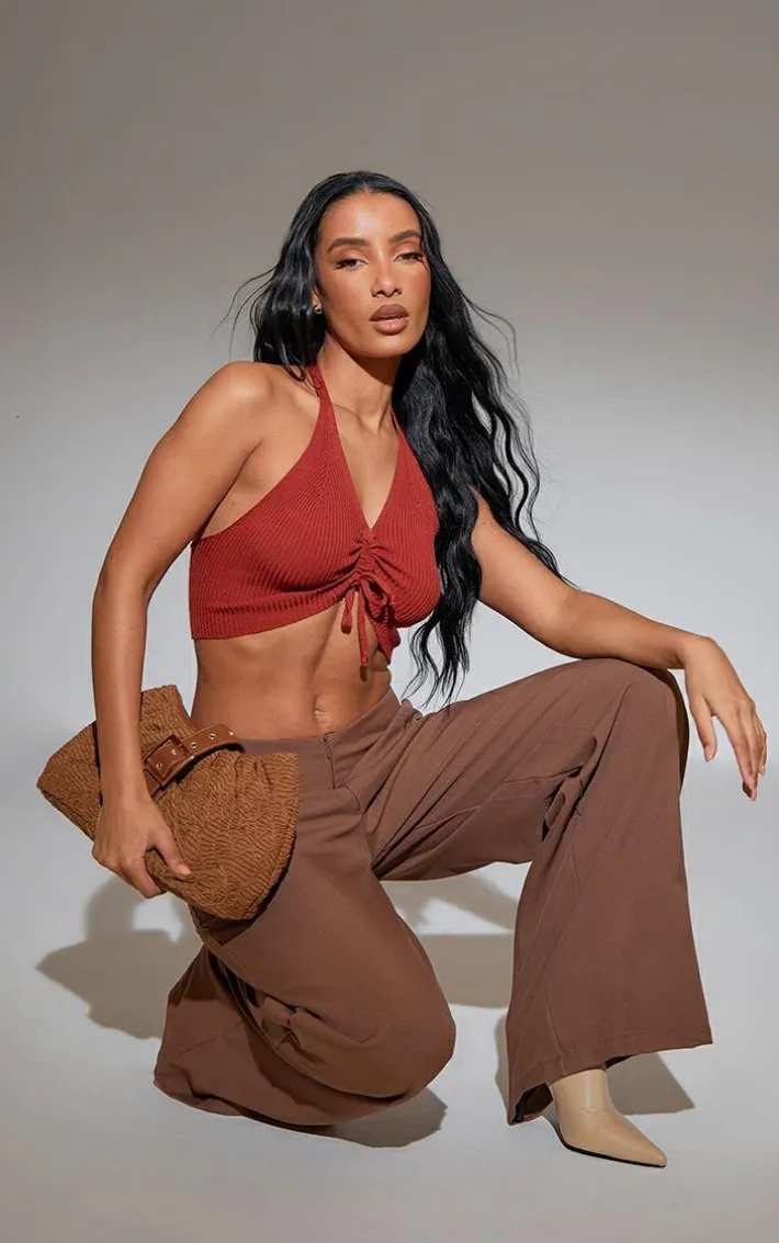 You are sure to steal all the stares with this unreal deep orange ruched channel halterneck soft knit top. We know this piece will be a fan fave. Made using a deep orange hue soft knit material with ruched detailing, a halterneck and a figure-flattering fit that will make jaws drop, what more could you ask for? You won’t be able to say no. Wear with tailored bottoms, gold hoop earrings and high heels for a weekend-worthy combo that will earn you all the right attention.