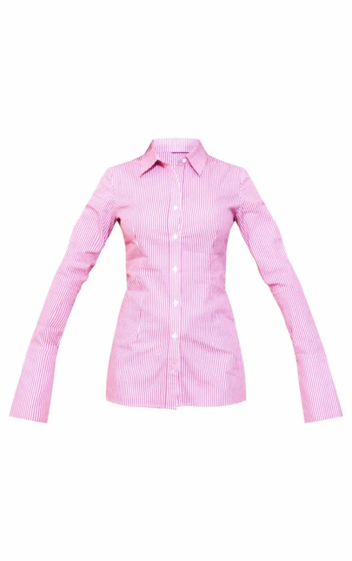 Amp up your style game with this deep pink pinstripe woven fitted shirt. Brought to you in a deep pink hue woven material with a pinstripe design and fitted detail, this shirt is calling your name. Style with denim shorts, sandals and gold accessories for a chic finish we can’t get enough of.