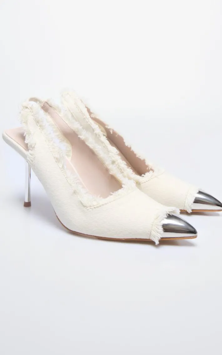 Take any look from 0-100 instantly with these denim toe cap wide fit sling back high stiletto court heels. Brought to you in a denim material with a toe cap and a wide fit, what more could you want? These court heels have a sling back detail and a high stiletto heel that will have you feeling fiercely feminine no matter what the occasion. Team with your go-to outfit of the day to turn heads for all the right reason.
