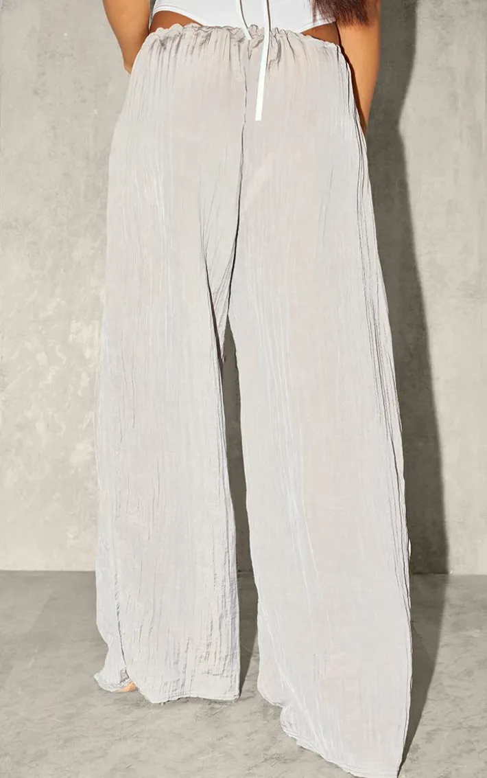 You won’t have to sacrifice comfort for style with these dove grey crinkle satin wide leg pants. Brough to you in a dove grey crinkle satin material with a wide leg design, what more could you need? Style these satin pants with a statement top, heels and a mini bag for a fierce weekend-worthy look that won’t go unnoticed.