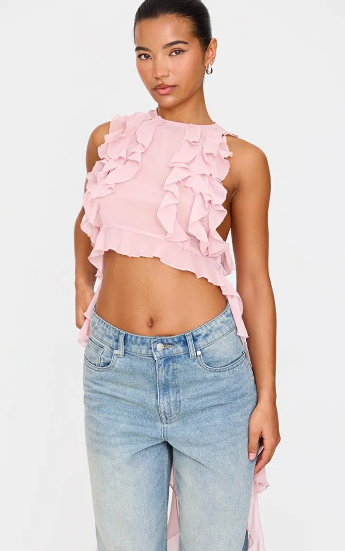 We’re crushing on this dusty pink ruffled train crop top. Brought to you in a dreamy dusty pink shade, with a luxe ruffled train design and cropped fit, you’ll be the best dressed at every occasion. Style with some wide leg jeans and your fave heels to really make an impact.
