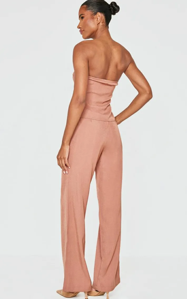 This dusty pink tailored woven thin belt detail bandeau jumpsuit is here to solve all of your ‘what to wear’ dilemmas this weekend. Brought to you in a dusty pink hue woven material with a bandeau neckline and thin belt detailing, how can you resist? Style this tailored jumpsuit with heels and simple gold accessories to complete the look we’re loving.