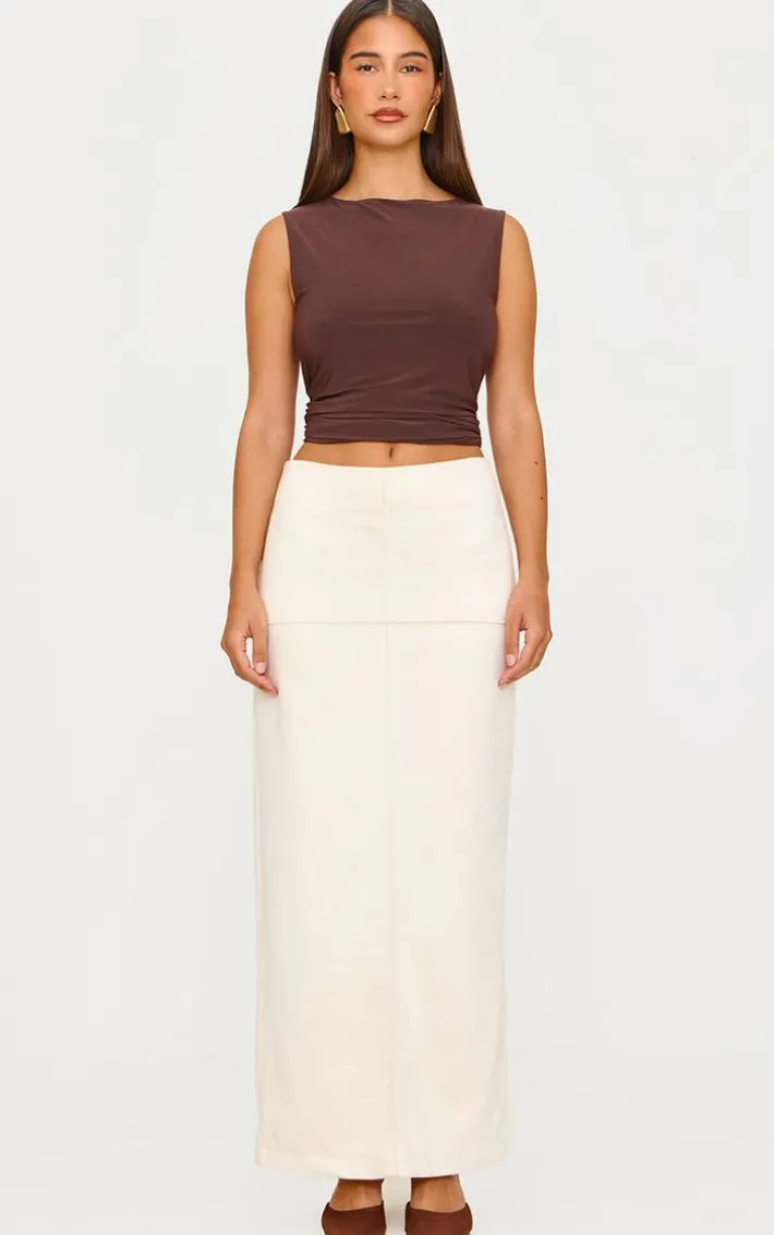 Make this ecru faux suede seam detail column maxi skirt a staple in your new season wardrobe. Brought to you in a ecru hue faux suede material with seam detail and a flattering maxi length, what more could you want? Style this faux suede skirt with a top, heels and simple gold accessories for a look that is sure to make heads turn.