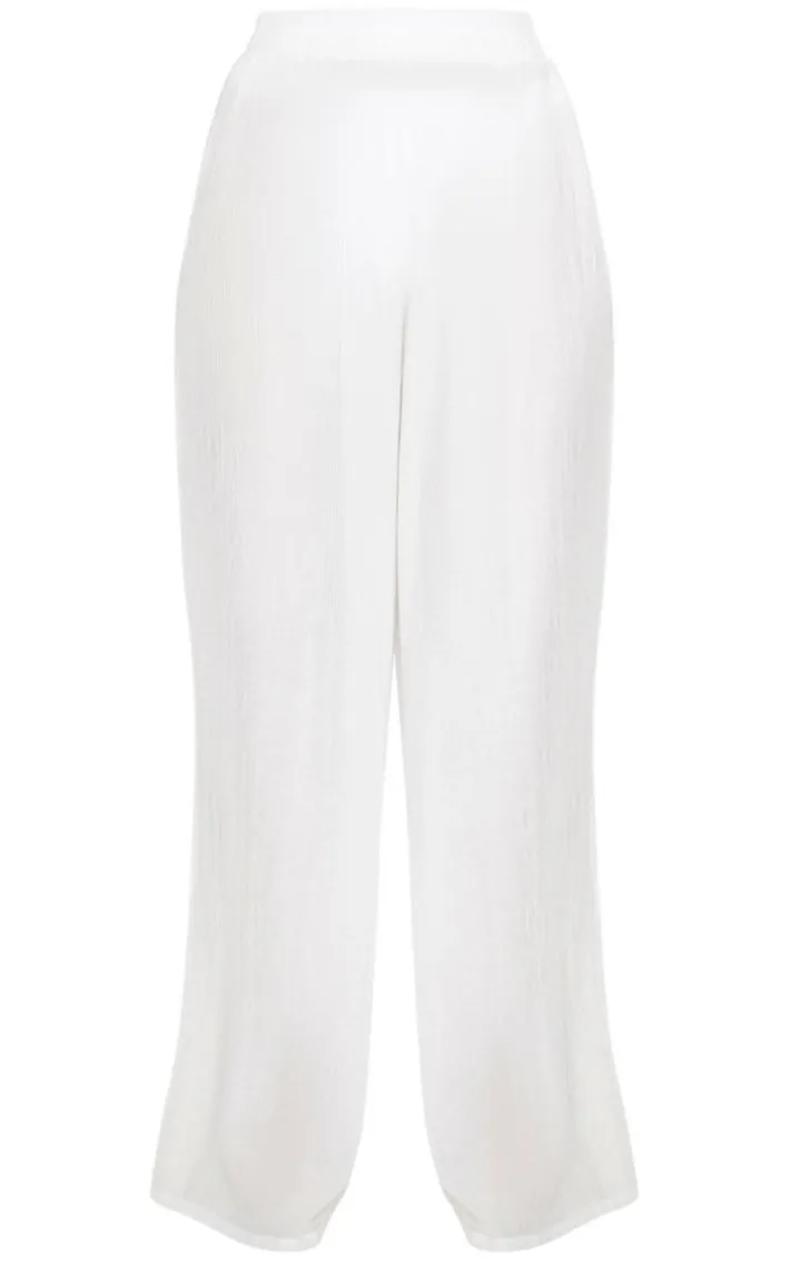 These wide-leg bottoms are perfect for lazy beach days and beyond. Featuring an ecru hue material with a high waistline and a wide-leg fit, team them with a simple white bikini and heeled wedges for a look we’re loving.