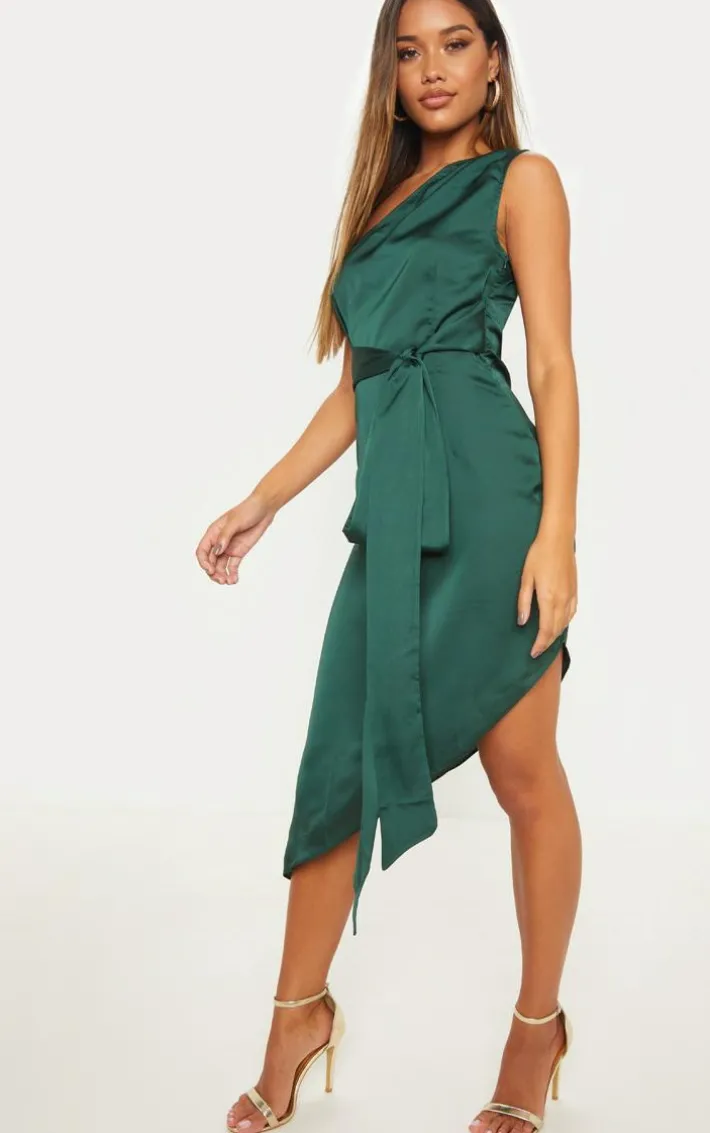 Get ready to steal all the stares in this effortlessly chic and oh-so classy midi dress, perfect for any special occasion you’re got planned. Featuring an emerald green satin material, a one shoulder design, tie waist detail and an asymmetric hem, what’s not to love? A cold shoulder dress makes a serious style statement and we can’t resist this perfect fit. Team it with a pair of strappy heels and statement accessories to complete the look.